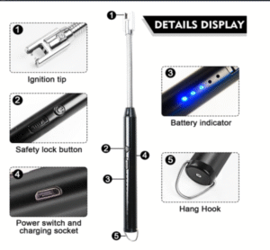 Features: Flameless, Windproof, USB Rechargeable, LED Battery Display, 360° Flexible Neck, Safety Lock
